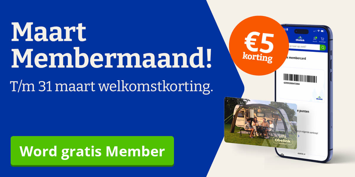 Jij hebt je nog niet aangemeld als Obelink Member. Profiteer nu van 5 euro welkomstkorting* als je deze maand Member wordt. Dit geldt ook op alle actieproducten! Daarnaast profiteer je tijdens de Maart Membermaand ook nog eens van extra spaarpunten. Op veel producten krijg je bovenop de spaarpunten die je altijd als Member ontvangt, nog eens tot 1000 extra punten t.w.v. 10 euro. Dat betekent dus dat je 2x extra voordelig kunt shoppen bij Obelink! |